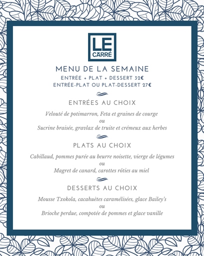 Menu de la semaine - Restaurant Le Carré