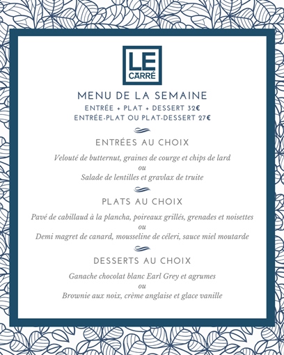 Voici notre menu du déjeuner de la semaine (10 au 14 novembre).