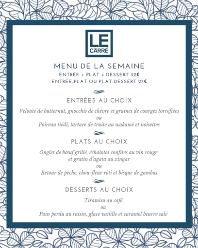 Menu déjeuner de la semaine au Carré