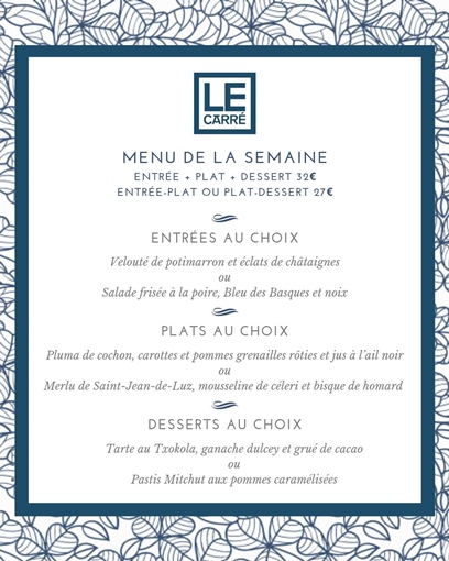 Menu déjeuner de la semaine - Le Carré