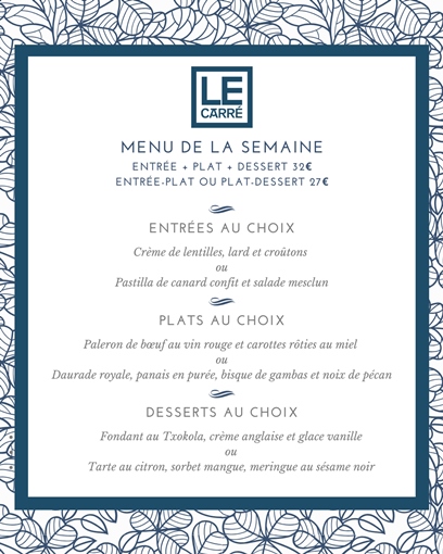 Menu déjeuner de la semaine - Restaurant Le Carré